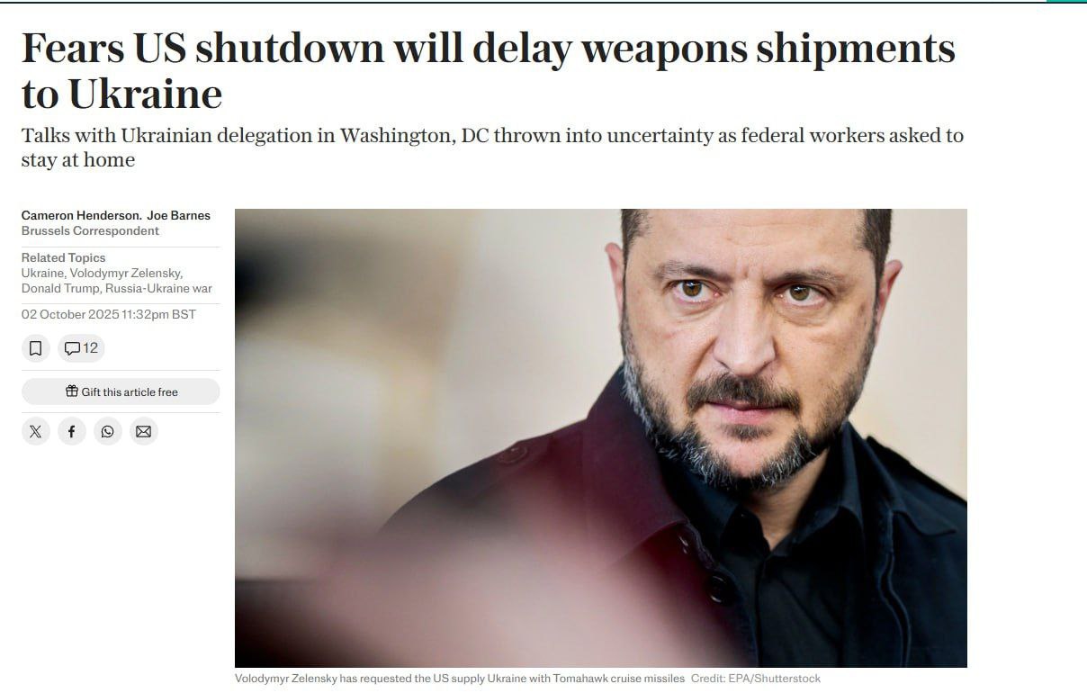 Дискуссии о военной поддержке Киева оказались заморожены после американского шатдауна 1 октября.