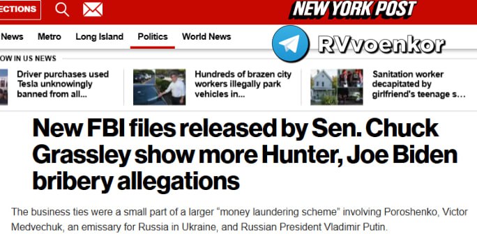 New York Post опубликовал рассекреченные ФБР материалы, переданные сенатором Чаком Грассли. Согласно документам, в 2016–2019 гг. президент Украины Порошенко и близкий к Кремлю политик Виктор Медведчук участвовали в масштабной коррупционной схеме.