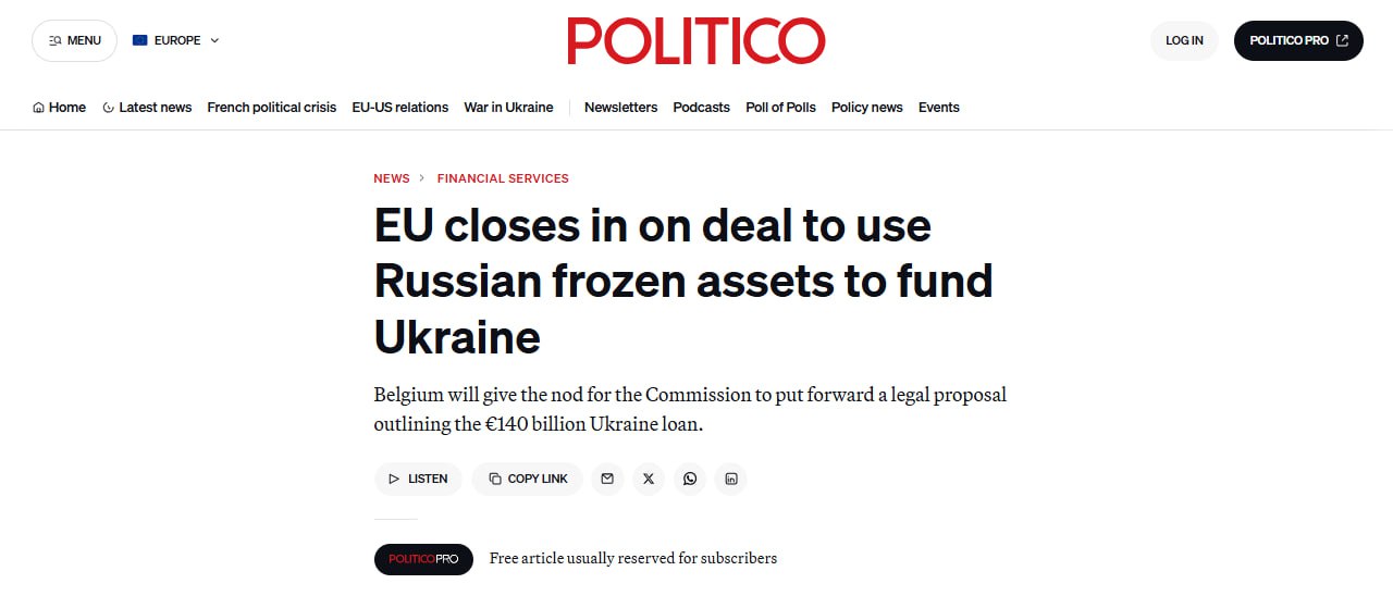 Бельгия не будет препятствовать конфискации российских активов, но вся ответственность ляжет на европейских налогоплательщиков — Politico