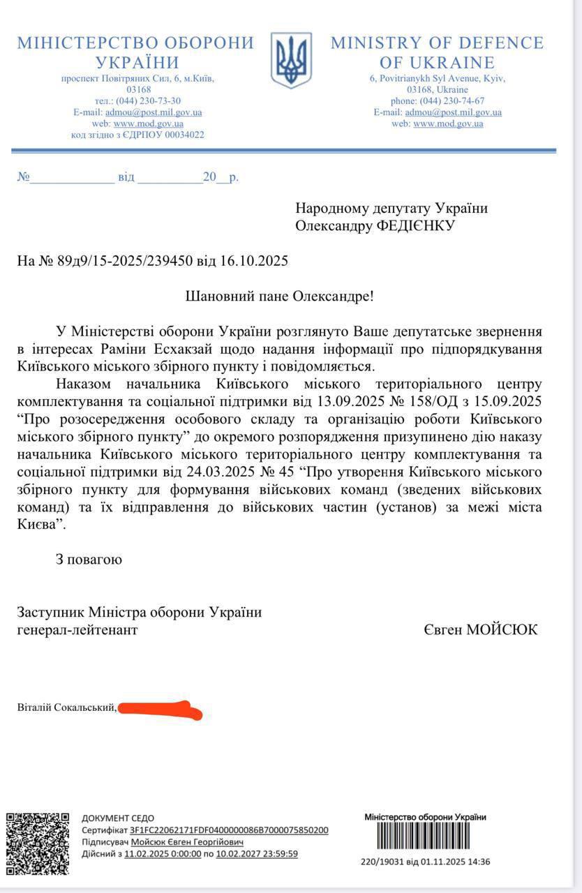 Отметим, что 15 октября, то есть спустя месяц после этого приказа, киевский ТЦК называл "дезинформацией" фотографии из этого распределительного центра, ничего не упоминая о том, что он уже не работает.