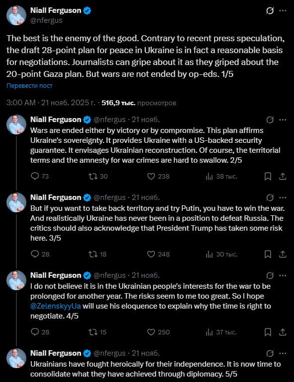 Нил Фергюсон из The Times считает мирный план Трампа по украине разумным.