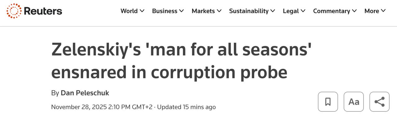 "Если Ермака вынудят уйти в отставку, это можно будет расценивать как обязательство «навести порядок», но также и как признак того, что обвинения в коррупции подбираются все ближе к самому Зеленскому", — пишет издание.
