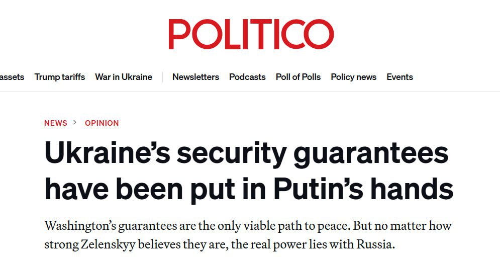 Politico фактически признаёт провал многолетней стратегии Запада, заключая, что будущая архитектура безопасности в Европе не может быть построена вопреки интересам России, а условия урегулирования будет диктовать Кремль.