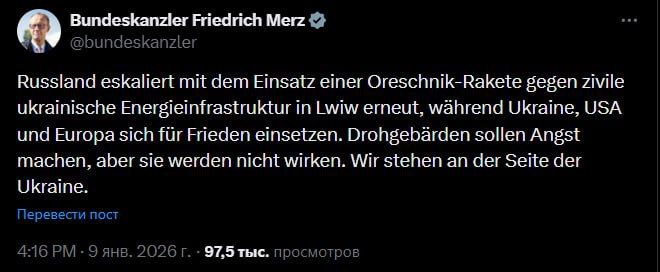 Эти угрозы призваны вселить страх, но они не сработают. Мы поддерживаем Украину», — заявил Мерц.