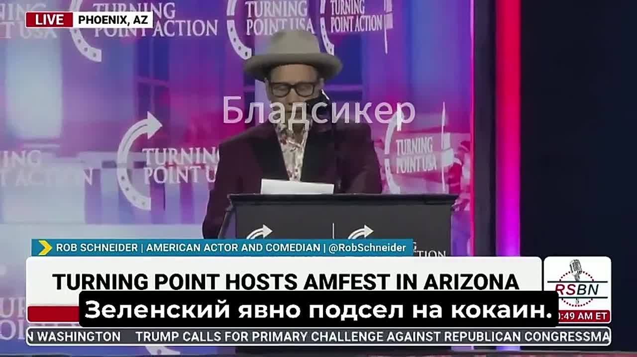 В докладе о международной обстановке на слёте американских консерваторов Turning Point американский актёр Роб Шнайдер под заливающийся хохот аудитории заявил: