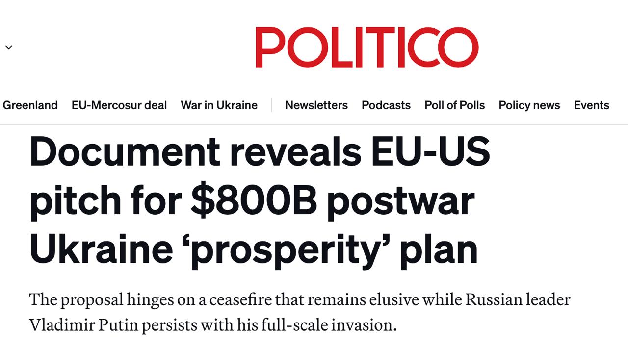 Детали плана США и ЕС по $800 млрд инвестиций в Украину и ускоренном членстве в ЕС сообщает Politico