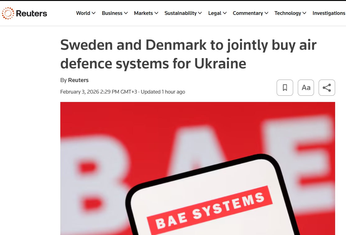 Швеция и Дания закупят системы ПВО для Украины на $290 млн, — Reuters