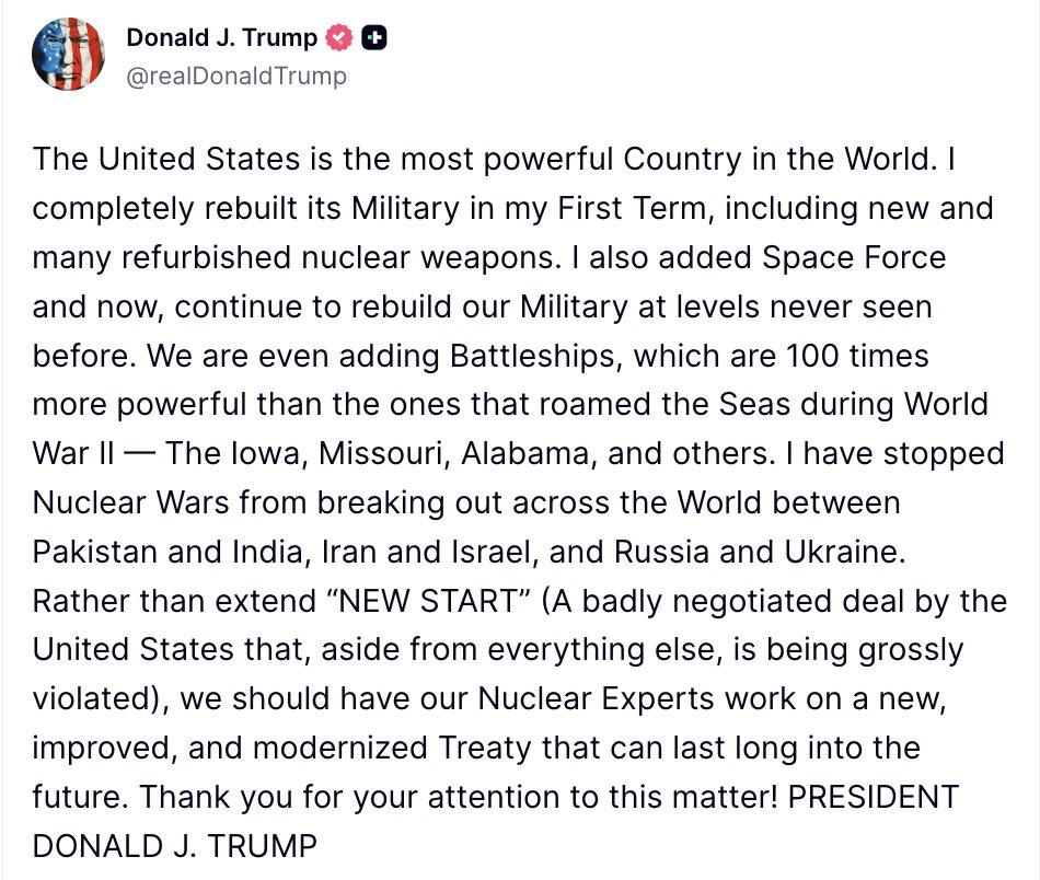 Президент США добавил, что не нужно продлевать ДСНВ, которое якобы еще и нарушается, а необходимо новое модернизированное соглашение.