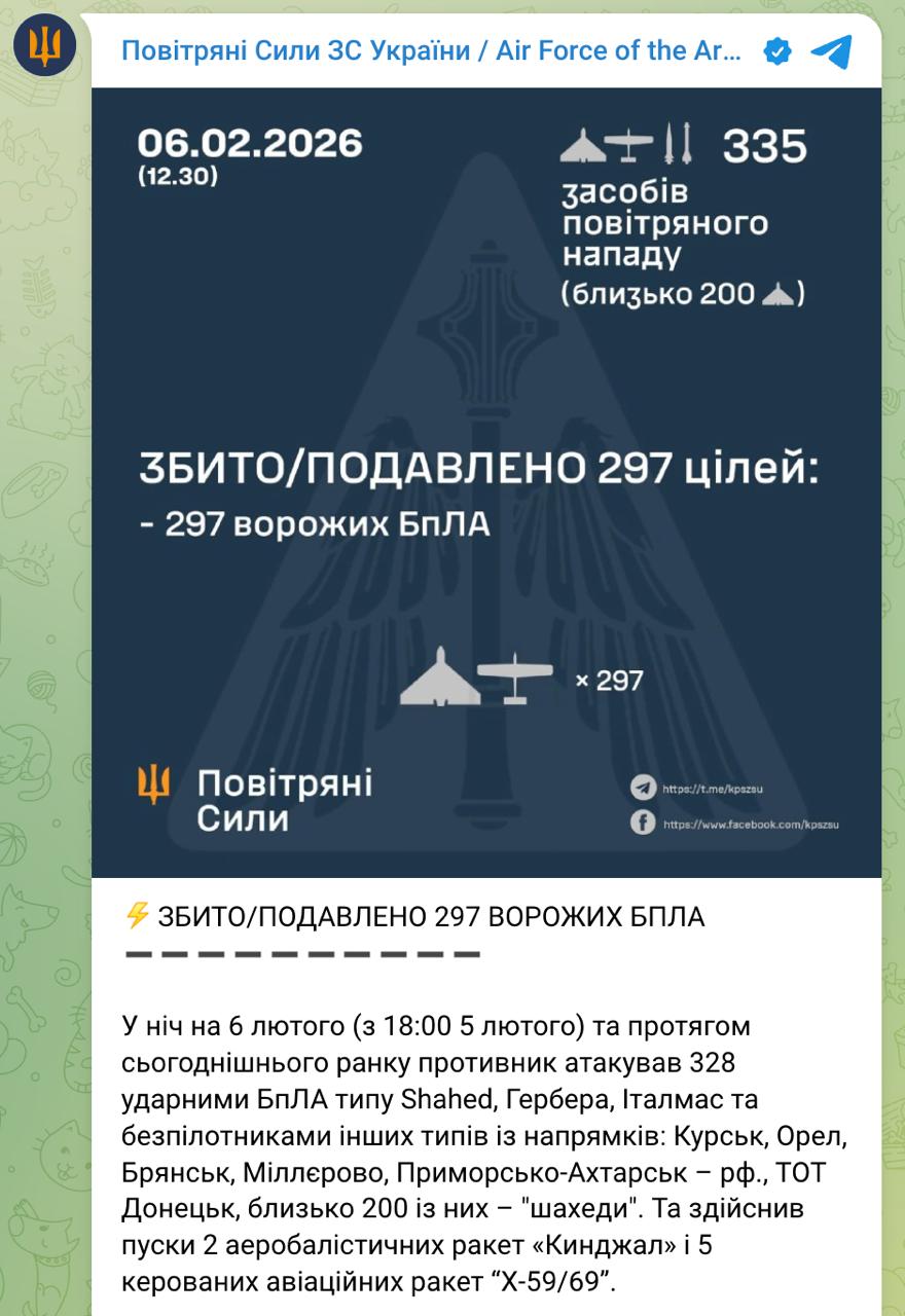При этом, в пресс-службе ВС ВСУ отчитались, что ночью большинство российских ракет и БПЛА были сбиты на подлёте.