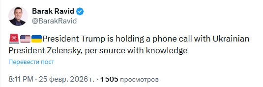 Трамп сейчас говорит по телефону с Зеленским о мирных переговорах