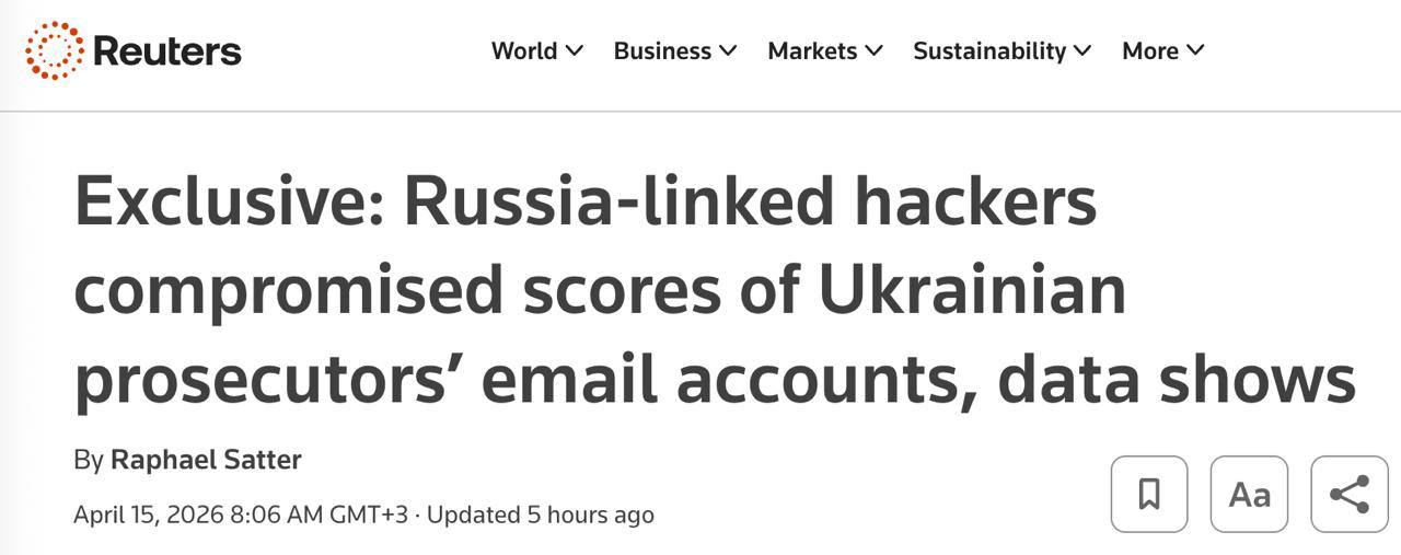 Российские хакеры взломали более 170 почтовых ящиков украинских и европейских чиновников - Reuters