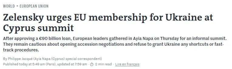 Премьер Люксембурга Фриден заявил, что "коротких путей для Украины в ЕС — нет", а премьер Бельгии де Вевер отметил, что "некоторые страны идут по этому пути десятилетиями".