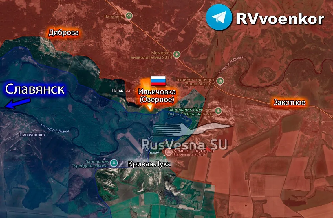 Продолжаются активные боевые действия и в районе Константиновки, где русские также имеют заметные в тактическом смысле результаты (полосы наступления российских 8-й ОВА и 3-го армейского корпуса)