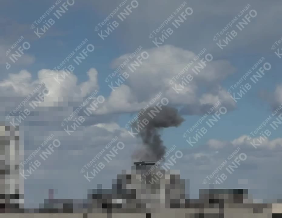 Ударные дроны атакуют столицу Украины, есть прилеты. Один из БПЛА попал по строящемуся зданию.