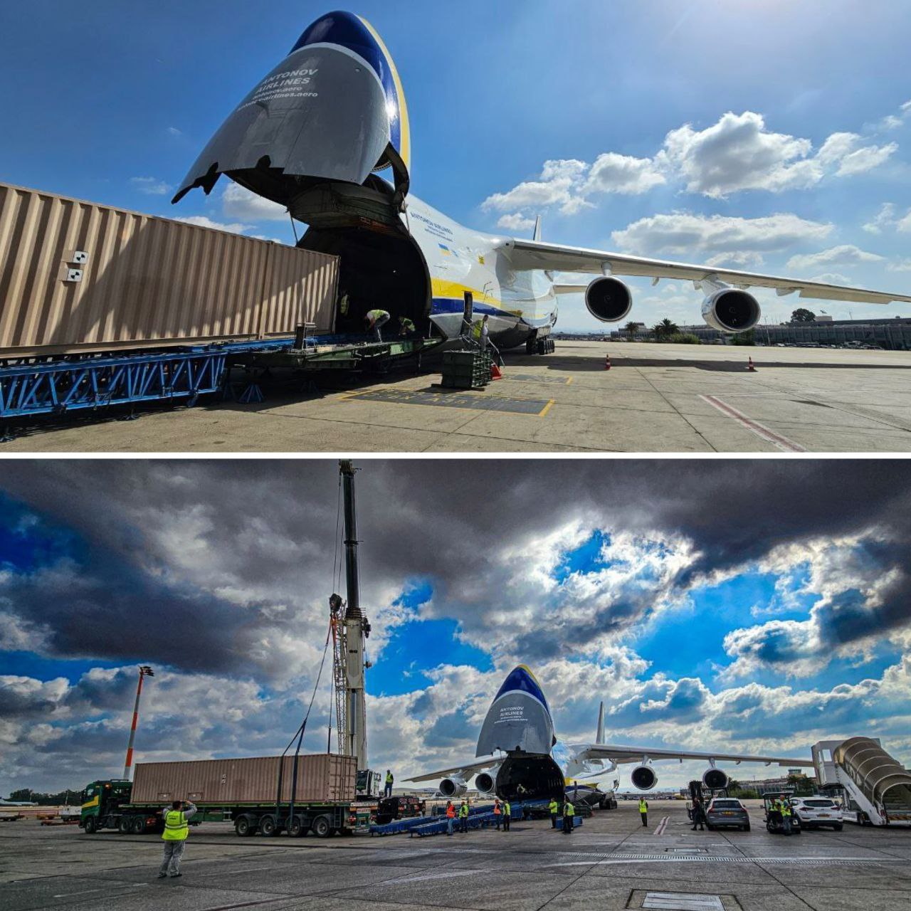 В Международном аэропорту имени Бен-Гуриона в Тель-Авиве был замечен тяжёлый транспортный самолёт Ан-124-100 украинской авиакомпании "Антонов", на борт которого погружен некий контейнер.