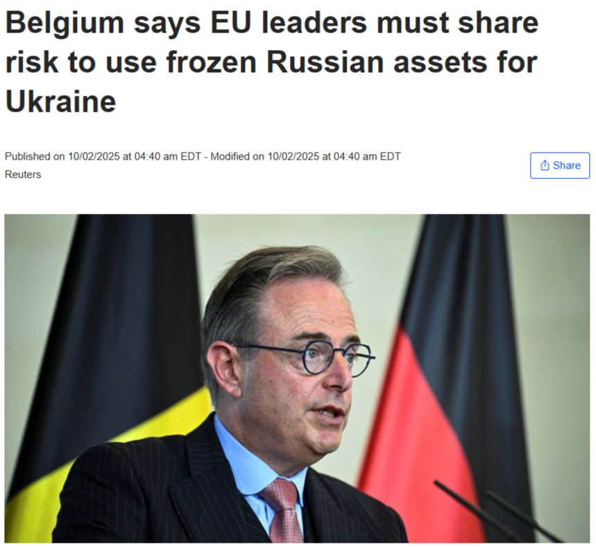 Несмотря на заявления руководства ЕС о предоставлении «репарационного кредита» Украине, Бельгия отказалась самостоятельно изымать или использовать замороженные российские активы и потребовала гарантий разделения финансовых рисков со стороны всех стран ЕС.