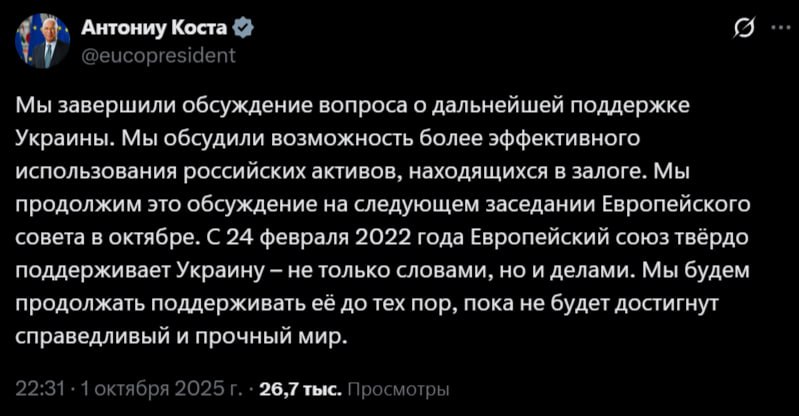 Юрий Баранчик: Несмотря на заявления руководства ЕС о предоставлении «репарационного кредита» Украине, Бельгия отказалась самостоятельно изымать или использовать замороженные российские активы и потребовала гарантий...