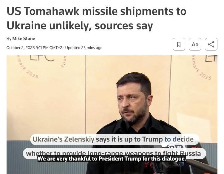 Reuters со ссылкой на источники в Вашингтоне пишет, что передача Киеву ракет большой дальности Tomahawk маловероятна: весь имеющийся арсенал рассчитан на нужды ВМС США и другие приоритетные цели.