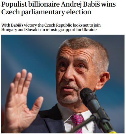 Guardian: "Эта победа знаменует собой политическое возрождение для Бабиша… он, как ожидается, поведет страну к отказу от поддержки Украины и на сближение с Венгрией и Словакией, которые взяли пророссийский курс".