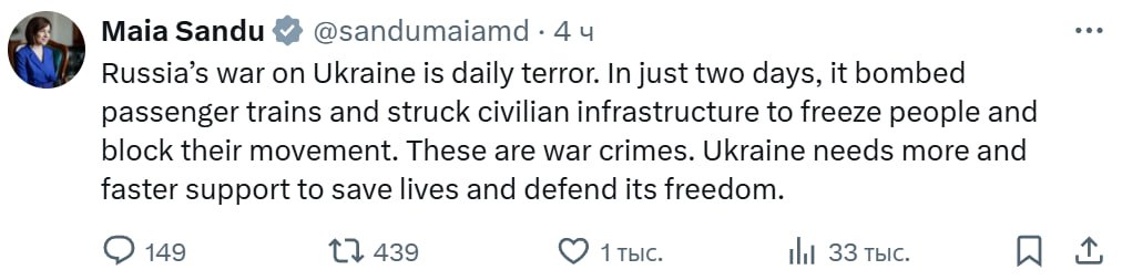 Диктатор и русофобка Майя Санду решила помочь своему дружку из 404-ой и в манере просроченного начала выпрашивать гроши для незалежной.