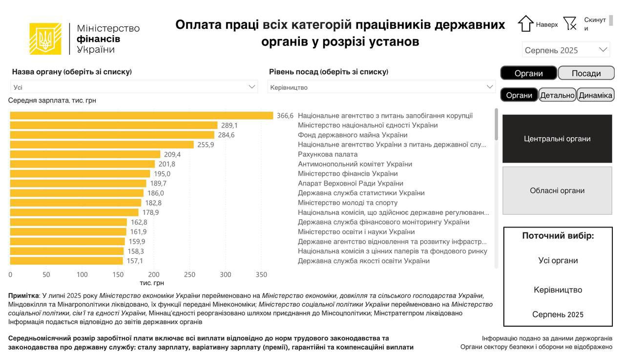 От 158 000 до 366 000 гривен в месяц: какие зарплаты получают руководители госорганов в Украине.