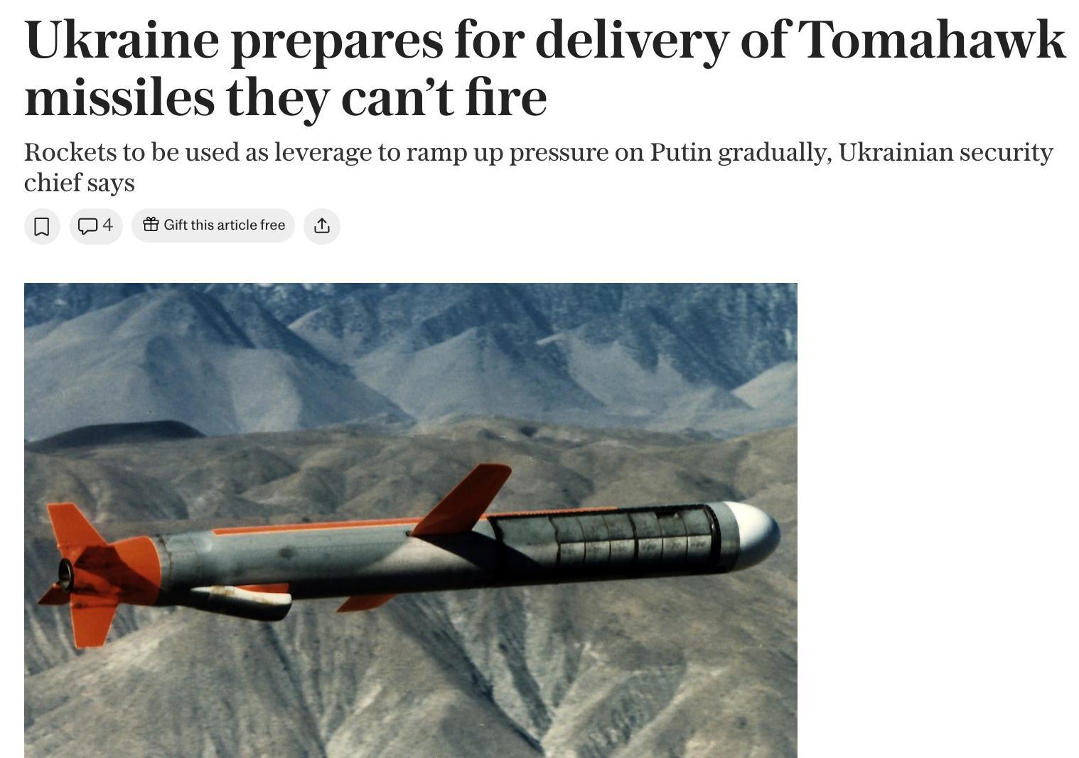 Возможные поставки «Томагавков» Украине могут занять месяцы, пишет The Telegraph.
