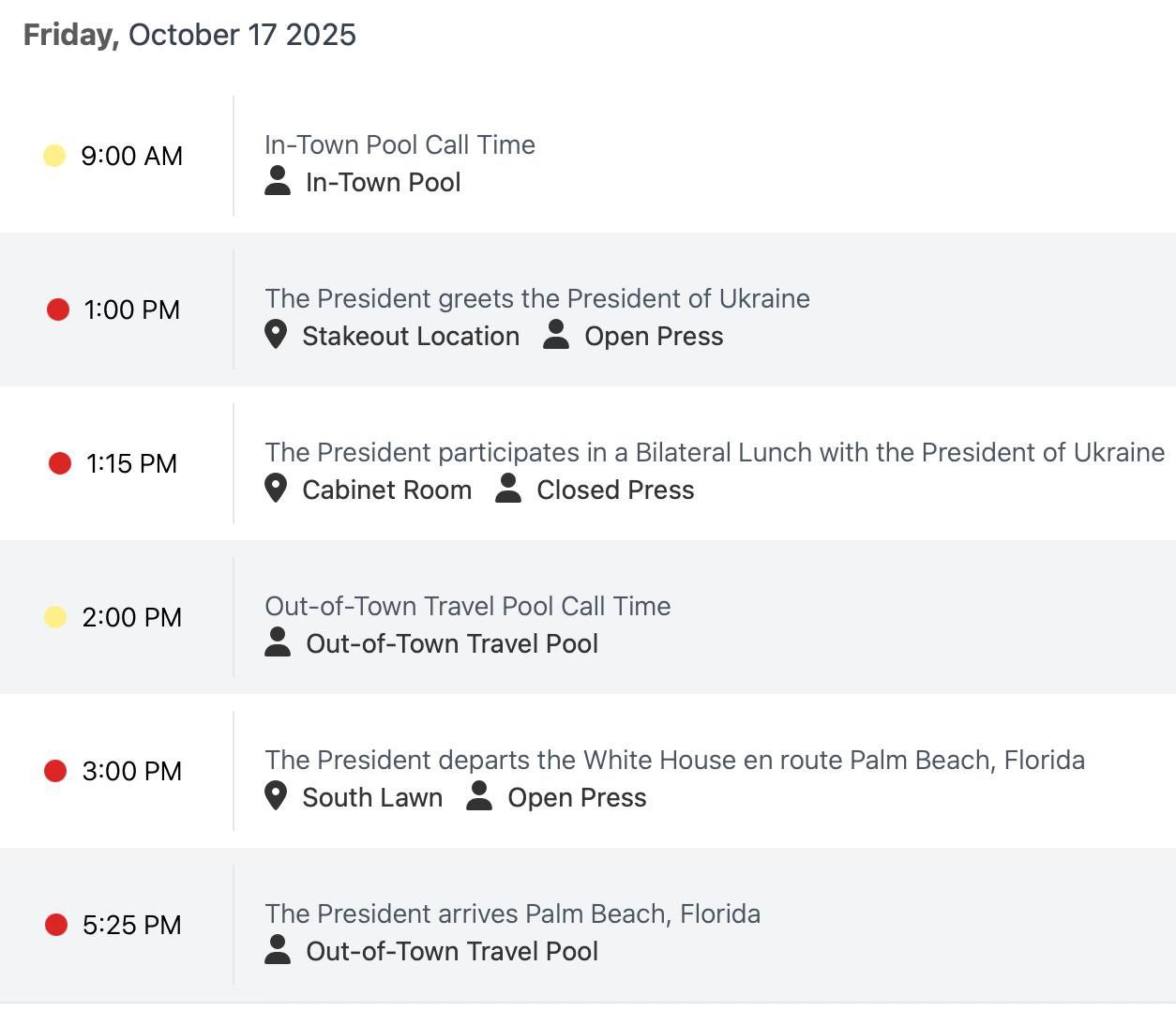 Исходя из расписания Трампа, с Зеленским он встретится в 13:00 (20:00 по московскому времени), и уже через час у него назначены рабочие созвоны, а через два часа он отправится во Флориду. В этот маленький кусочек времени, выделенный с широкой руки Зеленскому, входит еще и ланч.