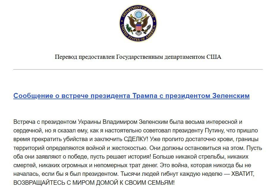 Встреча Трампа и Зеленского была резко оборвана, Трамп был в совсем другом настроении, чем раньше до разговора с Путиным, и не дал никаких обещаний относительно оружия Украине, он хочет заморозки войны, - Axios