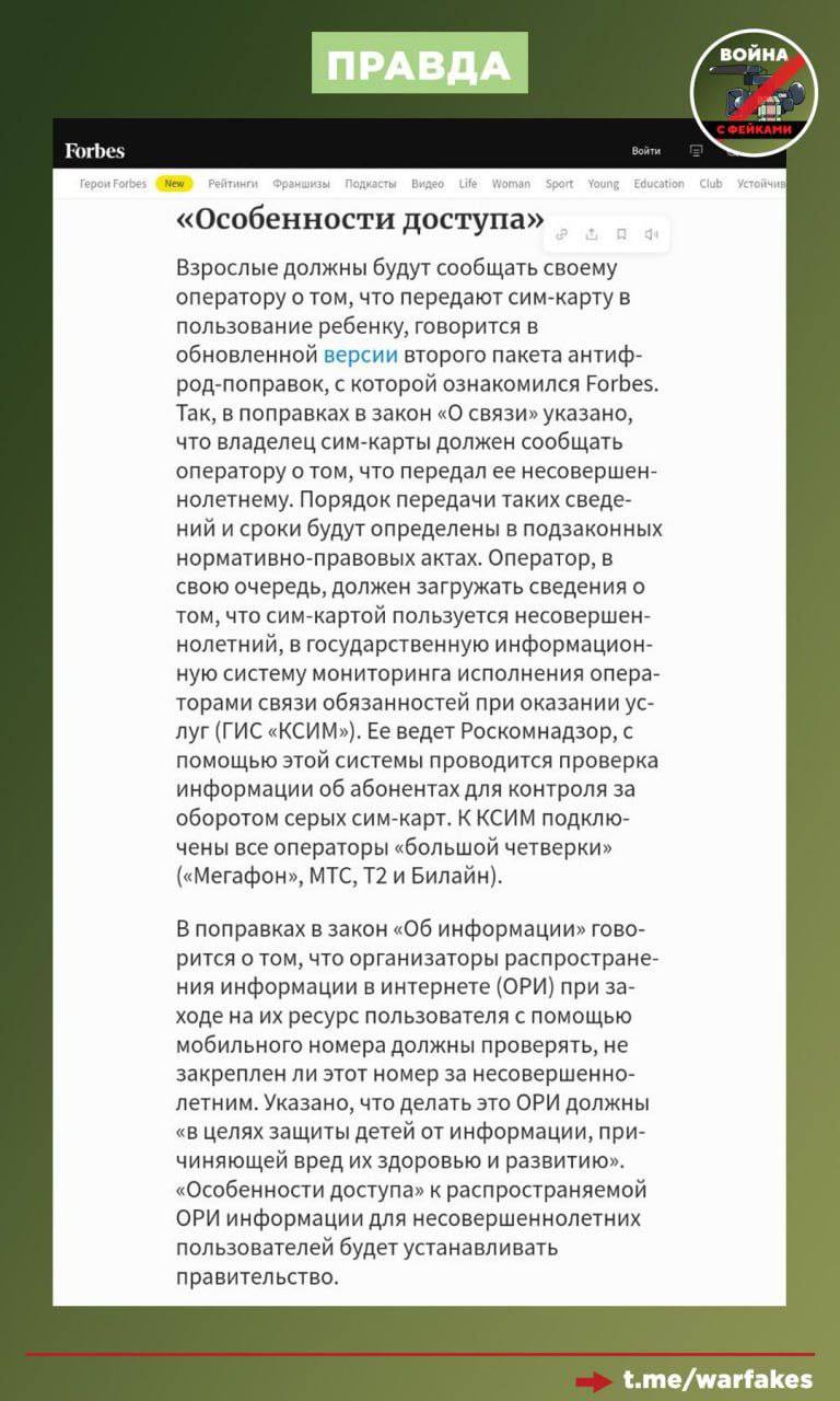 Правда: Пропагандисты искажают информацию из обновленной версии второго пакета антимошеннических поправок в закон «О связи». Никто не собирается запугивать детей и их родных. Наоборот, планируется ввести меры, которые обезопасят несовершеннолетних от мошенников и сотрудников иностранных спецслужб.