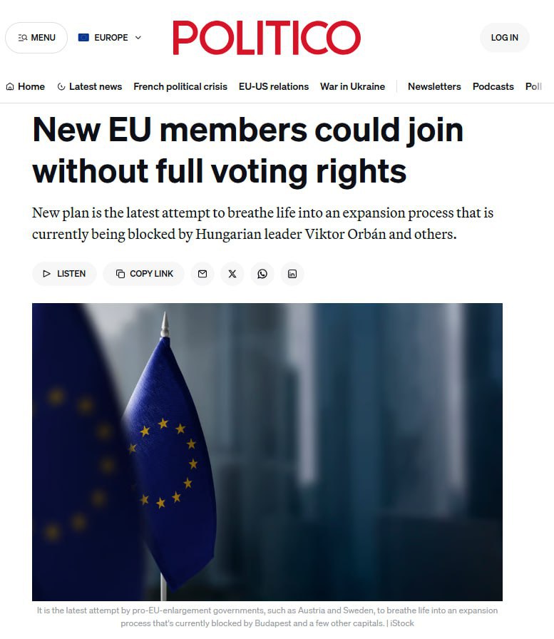 Инициатива находится на ранней стадии и требует единогласного одобрения всех 27 государств-членов. Главным противником идеи расширения количества стран в ЕС выступает Будапешт.