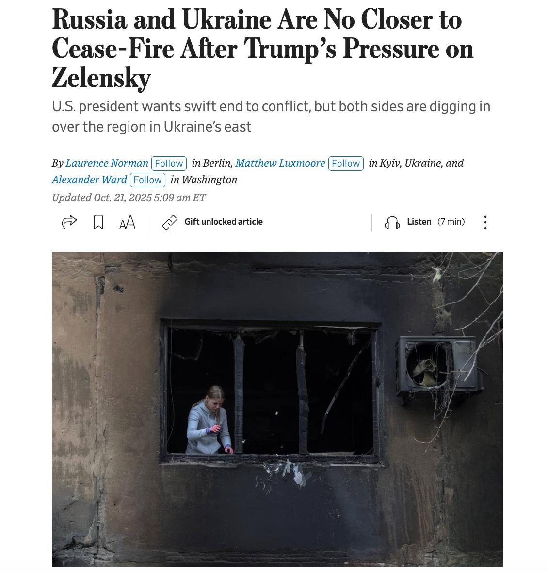 WSJ выпустило статью, в которой заявляется, мол Трамп дал понять Зеленскому, что обмен территориями ему безразличен. Главное — конец войны: