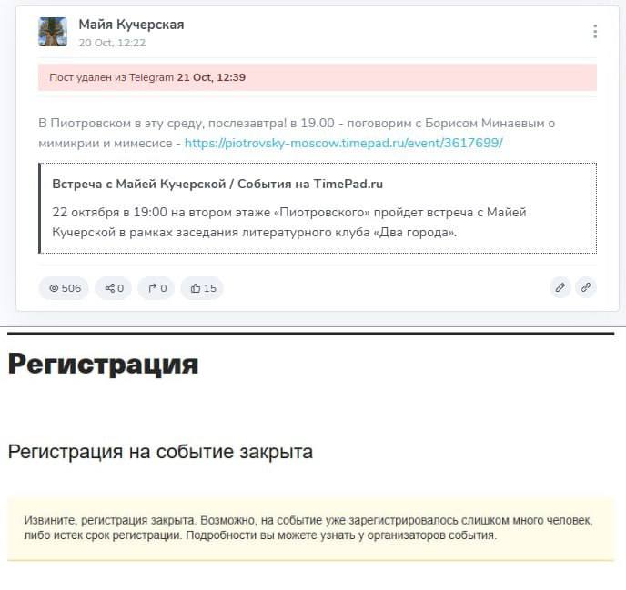 Однако после всплывших деталей «коллаборации» с антирусской «Новой газетой» организаторы спешно подтерли все анонсы, сославшись на якобы «болезнь» провокаторши.