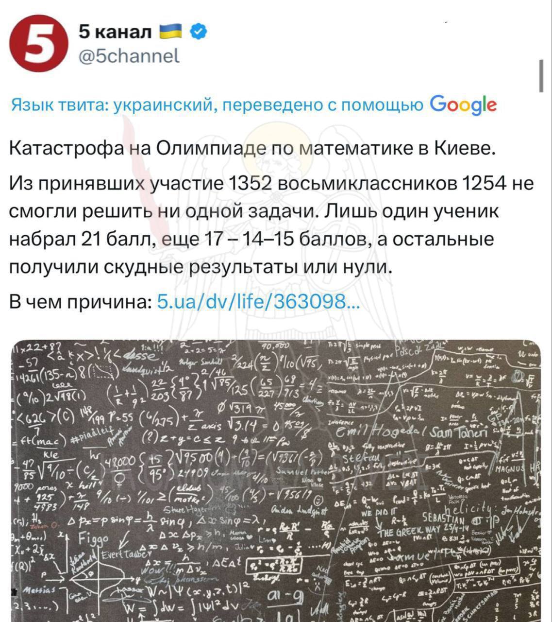 Катастрофа на Олимпиаде по математике в Киеве — ученики отупели