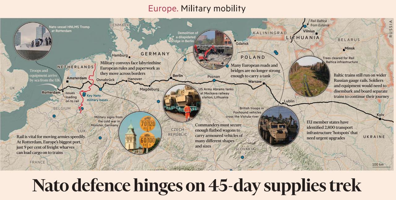 Накручивание европейцев продолжается. Сегодня в Евросоюзе будет представлен доклад об усилении «военной мобильности». Судя по данным Financial Times, главная задача: сократить до минимума скорость переброски военной техники и живой силы с западного побережья Европы на фронт с Россией. Да-да, о том, что такой фронт будет существовать, судя по всему, авторы доклада даже особо не сомневаются.