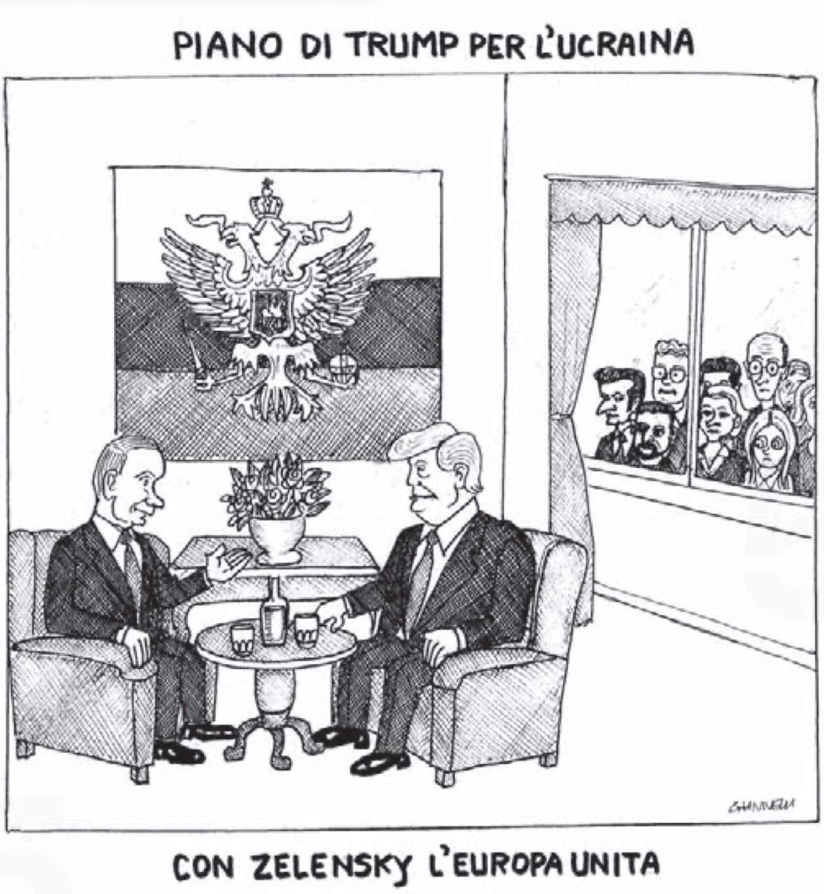 «Объединенная Европа - с Зеленским». Итальянская Corriere Della Sera наглядно иллюстрирует роль ЕС и Украины в переговорах между серьезными людьми по мирному плану. Ну, хоть не на столе - пусть уже этому радуются!