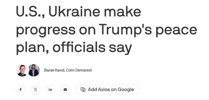 Представители Украины и США в Женеве достигли прогресса по предложенному президентом США плану урегулирования, сообщает Axios со ссылкой на источники в обеих странах
