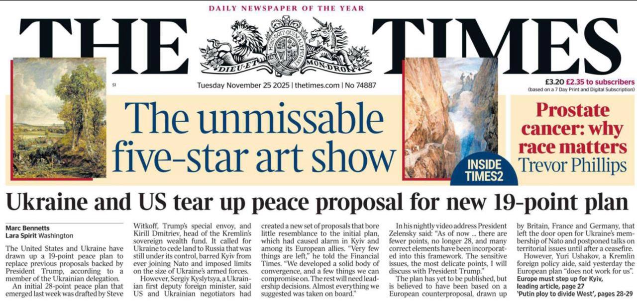 Судя же по большинству комментариев так или иначе причастных лиц, речь идет не о «сокращении» пунктов, а о том, что стороны смогли прийти к согласию лишь по 19 из 28 предложенных пунктов плана, а остальные просто вынесены за скобки и оставлены на рассмотрение Зеленского и Трампа при личной беседе. Что, конечно, никак нельзя трактовать как отказ Вашингтона от них.