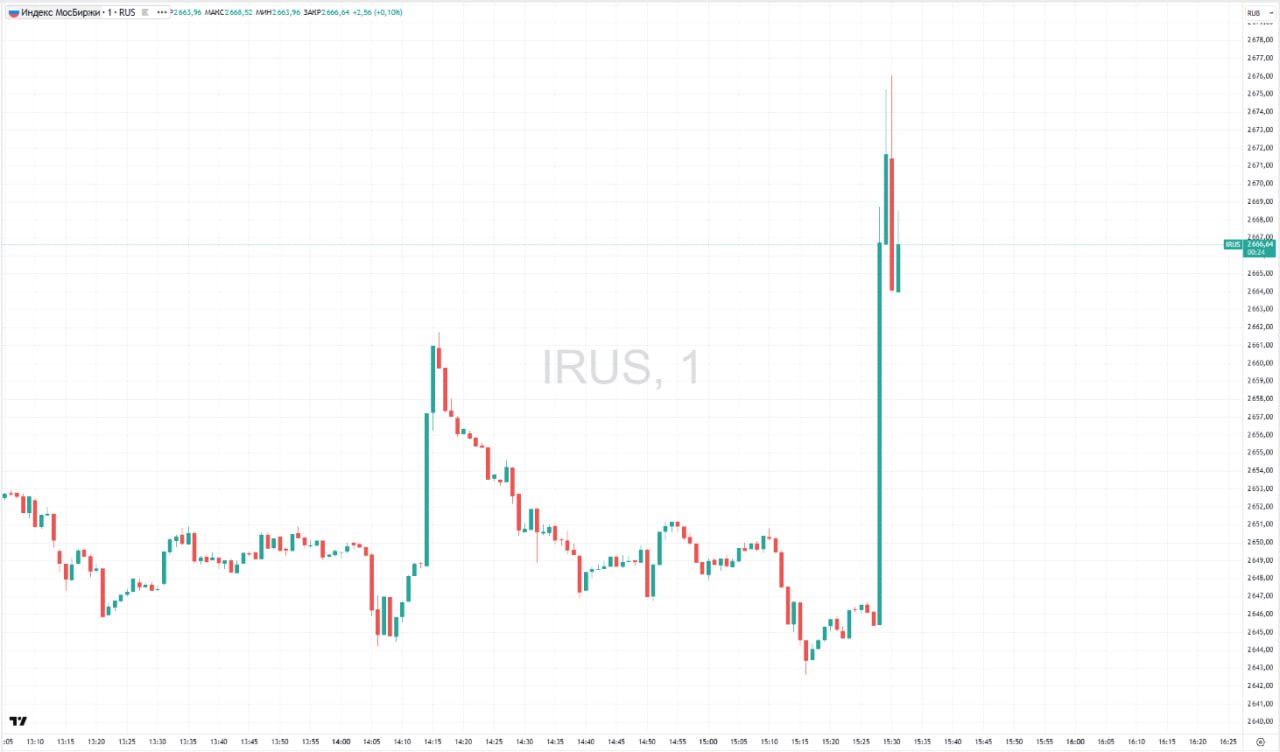 За три минуты индекс Мосбиржи прибавил 1,16%, до 2676,03 пункта. По сравнению с закрытием предыдущего дня рост составил 0,8%. До появления новости индикатор торговался в минусе.