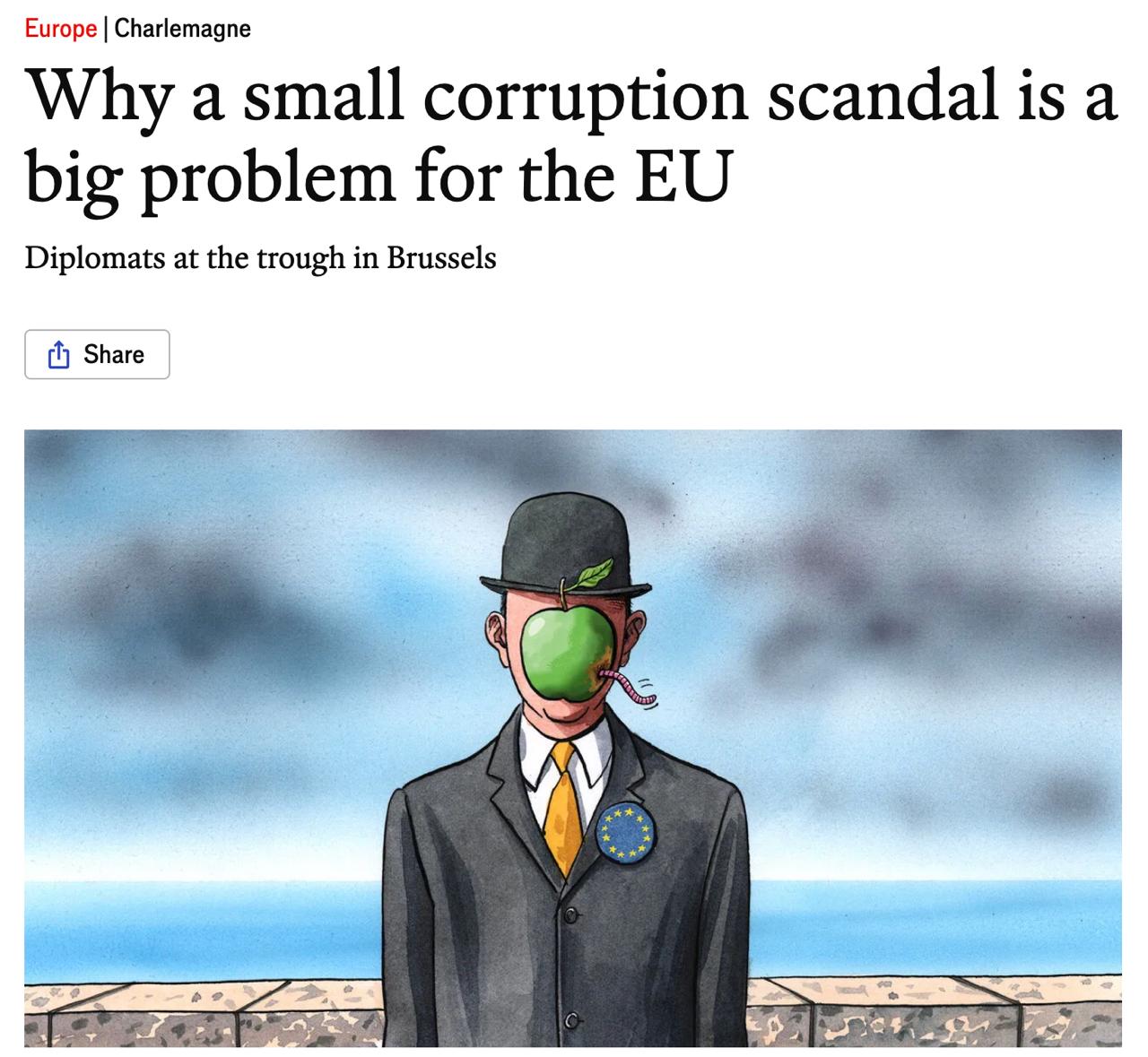 Евросоюз срочно включает антикриз. Идеологический рупор либералов The Economist выпускает статью под заголовком «Почему маленький коррупционный скандал - это большая проблема для ЕС».