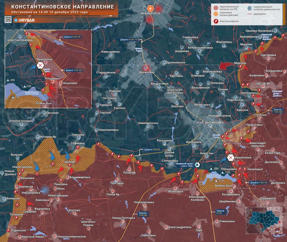 Обстановка в самой Константиновке остается прежней, подразделения ВС РФ накапливаются в восточной части города, действуя малыми группами, однако вглубь города пока не прорубаются, это было бы опрометчиво ввиду сложностей с путями доставки подкреплений и снабжения.