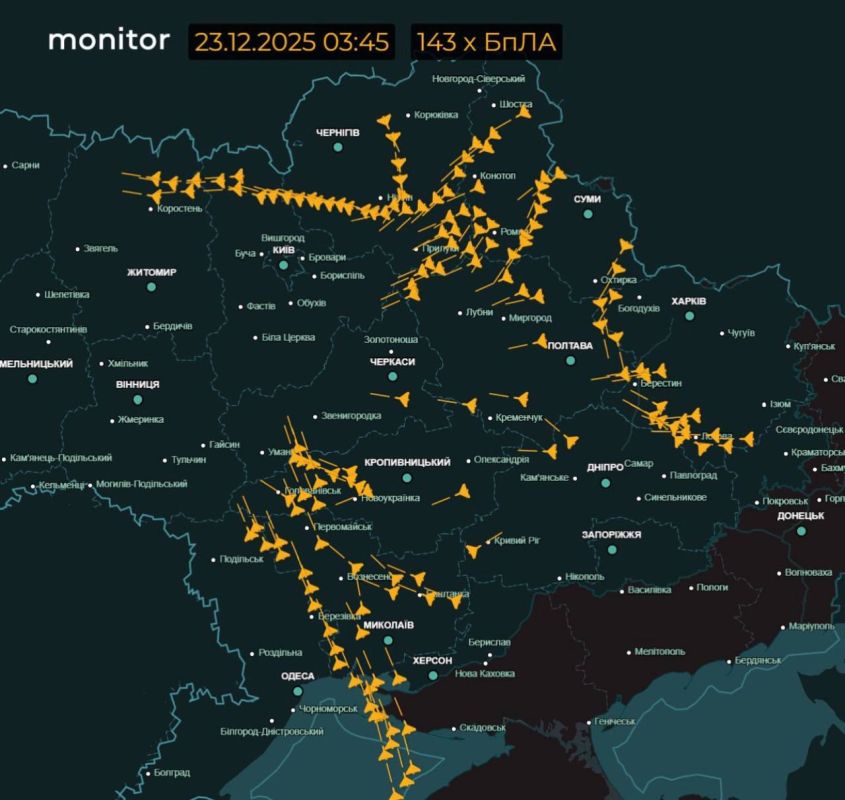 Украинские ресурсы сообщают, что большая часть ударных беспилотников направляется в сторону Киева.