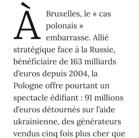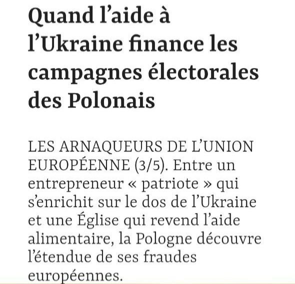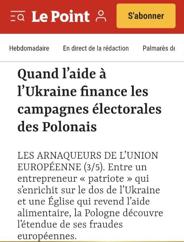 Французское издание Le Point раскрывает польскую схему мошенничества с военной помощью, в результате которой польская власть получила не менее 91 миллиона евро. Не говоря уже о мошенничестве с продовольственной помощью, осуществлённом Польской католической церковью.
