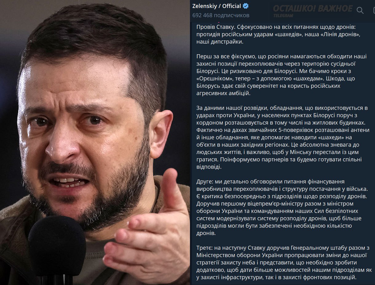 «С крыш жилых домов Белоруссии наводят дроны по целям на Украине»: Зеленский угрожает