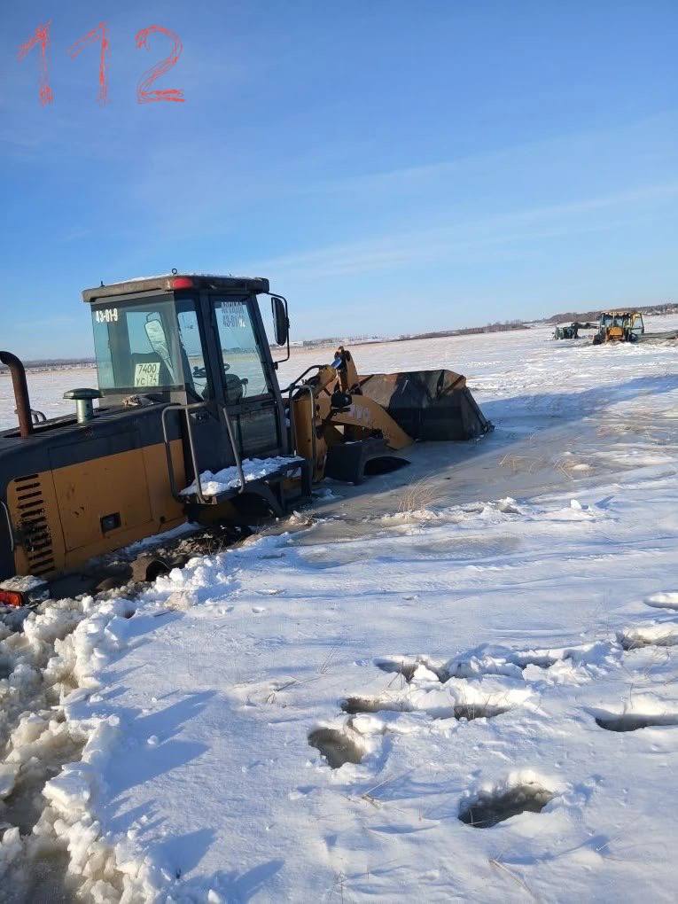 В Магнитогорске пытаются вытащить три провалившихся под лёд трактора. Техника расчищала трассу для дрифта на озере.