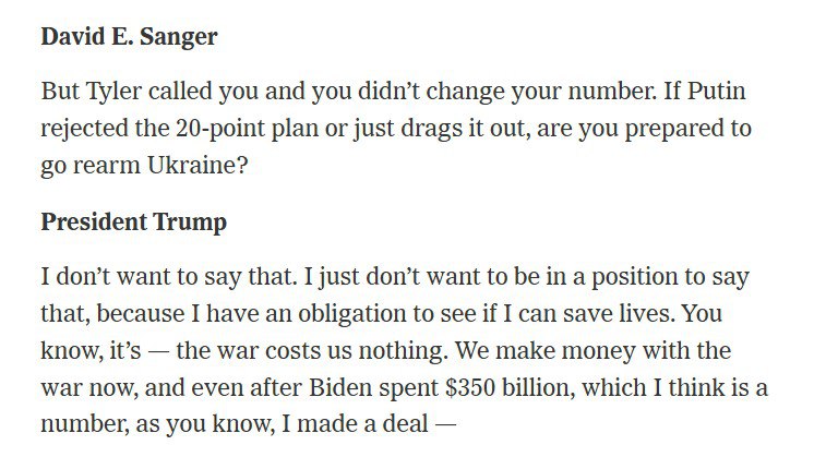 - Если Путин отклонит план из 20 пунктов, готовы ли вы перевооружить Украину?