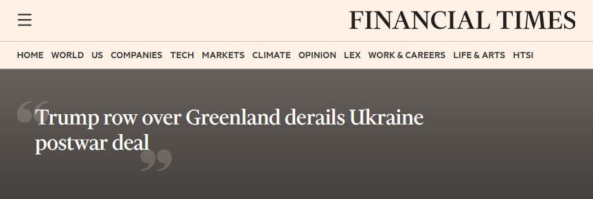 Конфликт США и ЕС по поводу принадлежности Гренландии сорвал согласование на Всемирном экономическом форуме (ВЭФ) в Давосе плана послевоенного восстановления Украины на сумму 800 миллиардов долларов, — The Financial Times со...