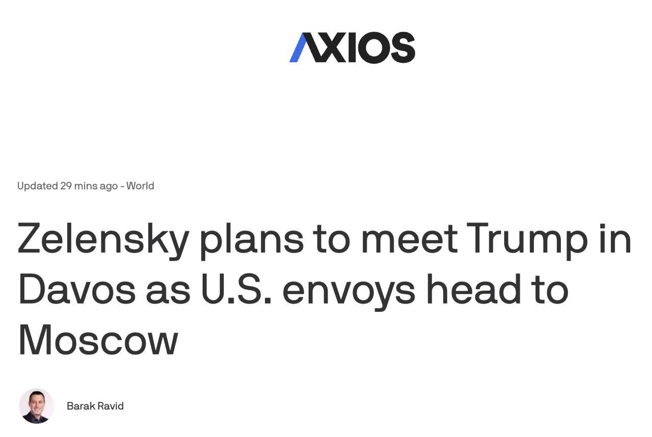 Зеленский в Киеве после того, как Трамп сказал, что планирует встретиться с ним сегодня в Давосе.Юнашев LIVE теперь и в МАХЗадать вопрос