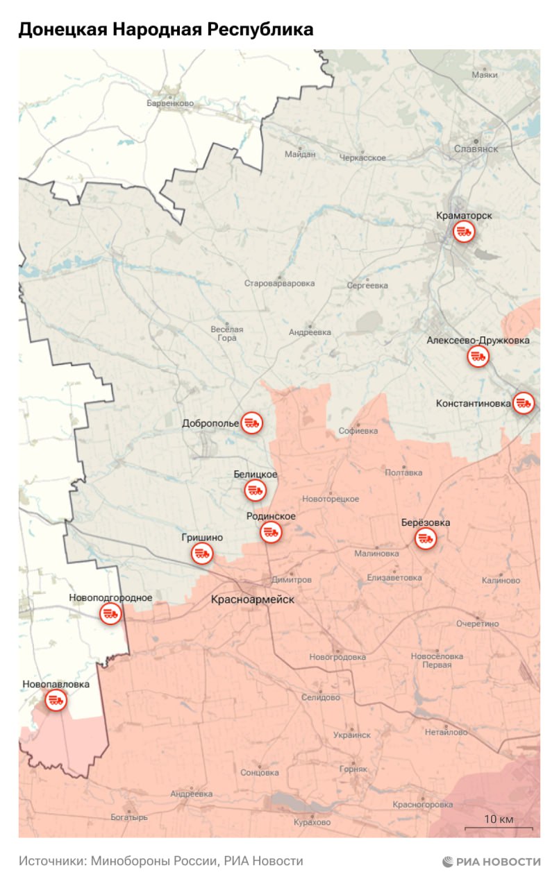 ВС России продвигаются в Константиновке в районе ж/д вокзала, а также в районе населенных пунктов Бересток, Степановка и Ильиновка, сообщил глава ДНР Пушилин.