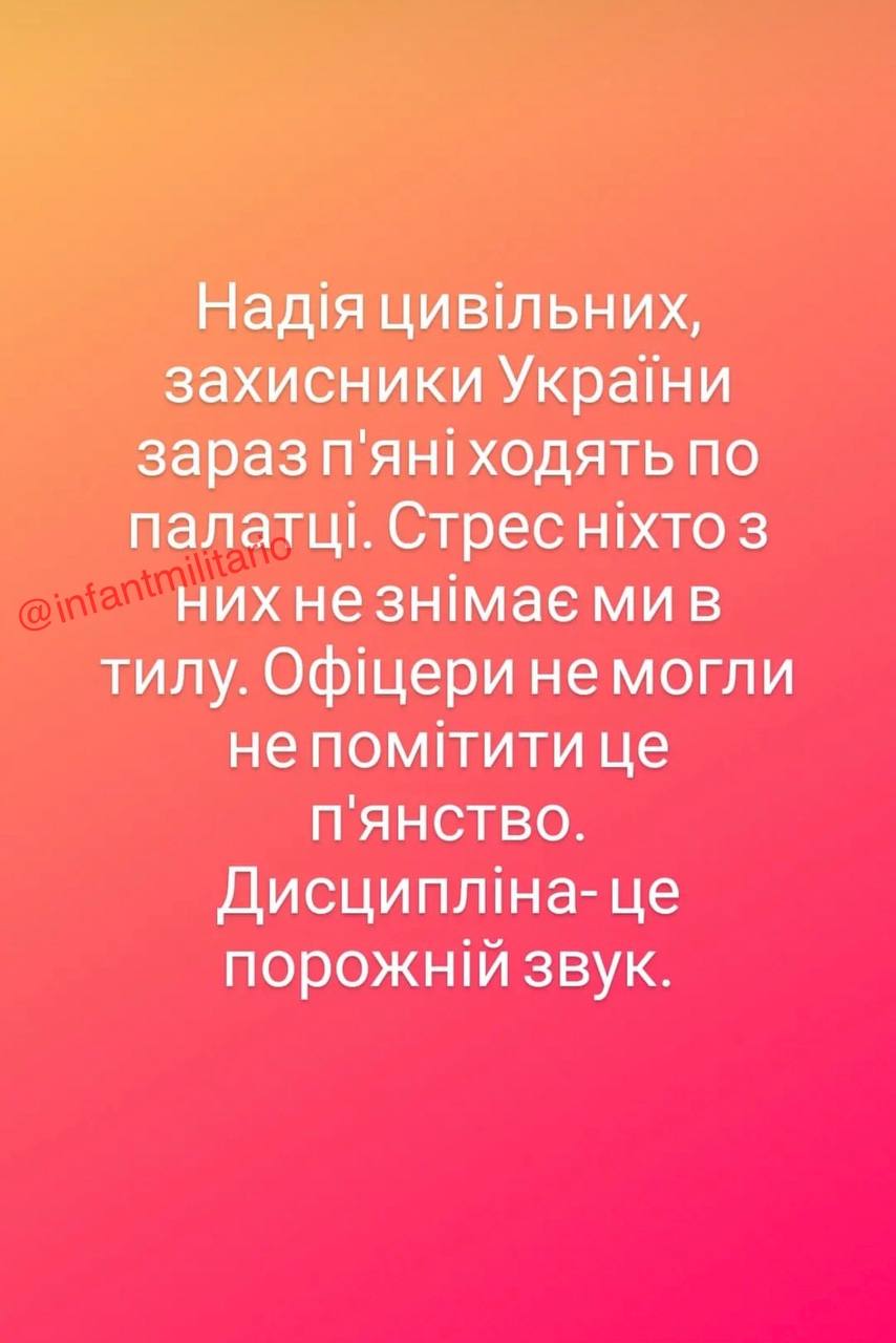 Надежда гражданских, защитники Украины сейчас пьяные ходят по палатке. Стресс никто из них не снимает мы в тылу. Офицеры не могли не заметить это пьянство. Дисциплина – это пустой звук.