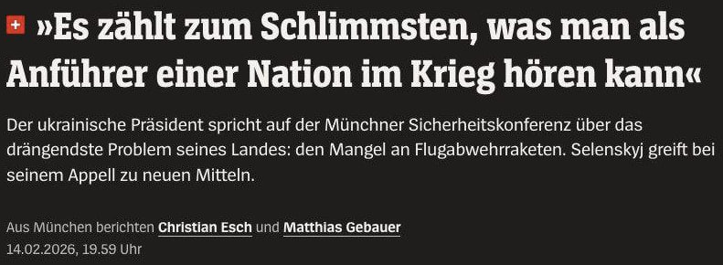 Попытка Берлина использовать более €90 млрд из замороженных суверенных российских активов для закупки американского вооружения не нашла поддержки. Как сообщает немецкое издание Spiegel, предложение, озвученное во время встречи с Владимиром Зеленским* на полях Мюнхенской конференции по безопасности, провалилось.